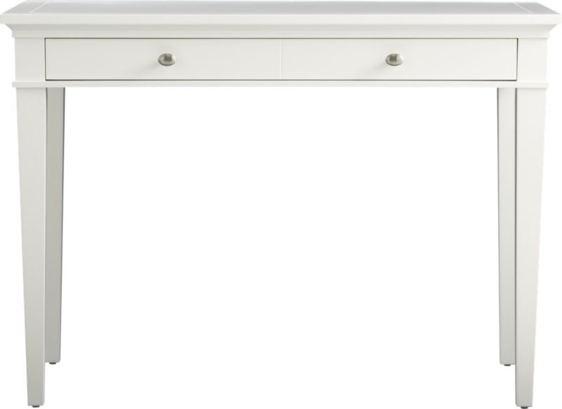 I love this classic little white writing desk from Crate and Barrel and am considering it for little c's room.